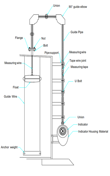 When the liquid level changes, the change in the float buoyancy is detected and the spring motor adjusts the measuring tape to maintain the float position on the surface of the liquid.